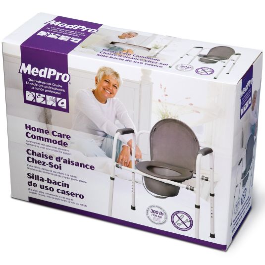 The MedPro Homecare Commode is designed for versatility and can be used as a toilet safety frame or raised toilet seat.