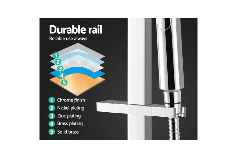 You will get a top quality fixed 10” shower head that simulates rainfall for a very soothing shower plus a handheld shower head with up to three spray patterns to let you target the water at specific areas with varying intensities. Made with a solid brass body and finished in premium chrome, the durable fixed shower head also features a built-in brass diverter to prevent leakage. The handheld shower head has a 1.5m stainless steel water hose to allow flexible use. The shower head comes with a 3-star rating with a flow rate of 9 litres/minute for a relaxing shower that satisfies.