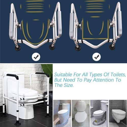 - The frame is made of durable and easy-to-clean aluminum that provides strong support. Our safety rails help you sit or stand from the toilet safely and easily, ideal for seniors, disabled, pregnant, and adult users.